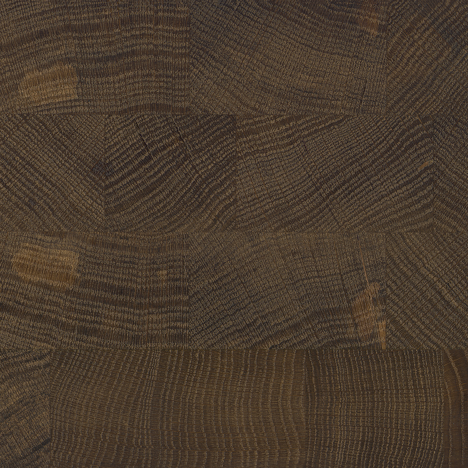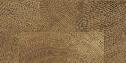 Für die Hirnholztischplatten werden quadratische und rechteckige Eichenholzblöcke mit sichtbaren Jahresringen zu einer massiven, ca. 6 cm starken Tischplatte verleimt. Die Eichenhirnholzplatte wird standardmäßig mehrfach gebürstet (bis ca. 2 mm Relieftiefe), um die Jahresringe besonders herauszuarbeiten. Auf Wunsch ist preisgleich eine glatte Oberfläche möglich. Die Massivholzplatte aus Hirnholzblöcken ist nur mit Kante 1 möglich.
