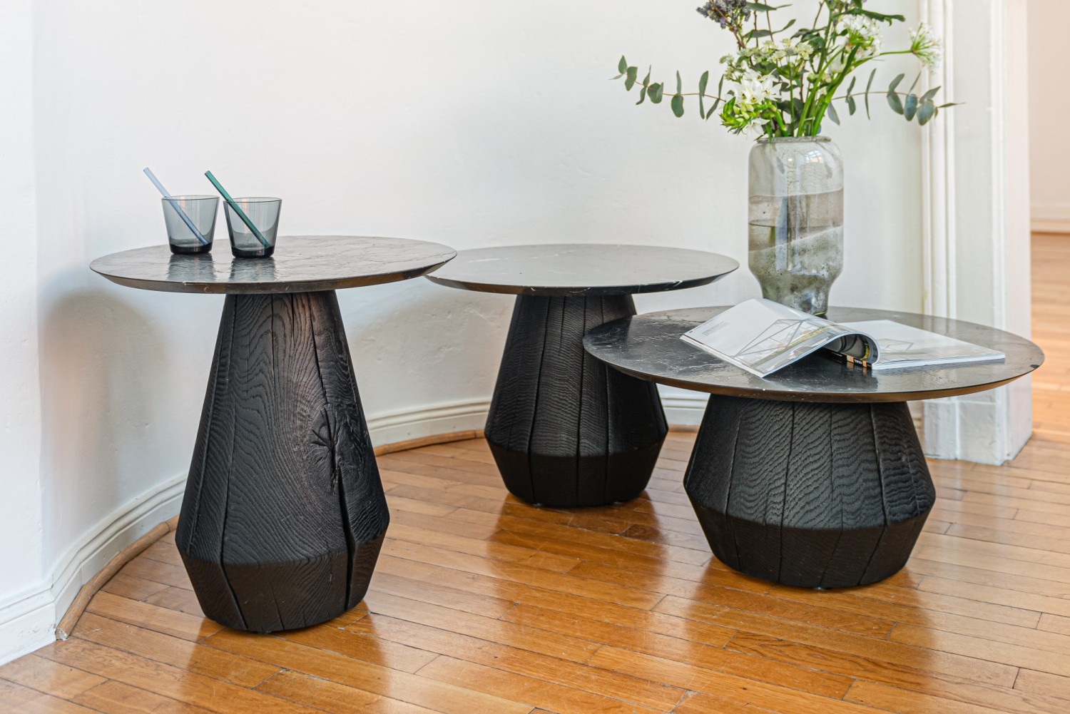 Ein Kunstobjekt als Beistelltisch. Der formschöne Entwurf von Designer Nick Pyka erinnert an einen Steinpilz. Der kegelförmige Zylinderfuß aus Massivholz wird handgedrechselt und trägt eine runde Massivholzplatte, aus Stahl oder eine Platte aus Naturstein. Drei Größen und Höhen stehen für den Loungebereich zur Auswahl. Ein kleiner Tisch – natürlich und ausdrucksstark. Ivy, ein Hingucker in jedem Ensemble.