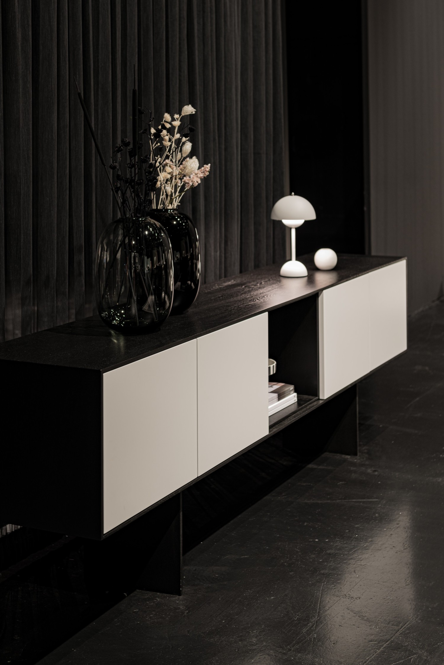 Choose the matching frame option for the ASCO tables or mount the sideboard wall-mounted.